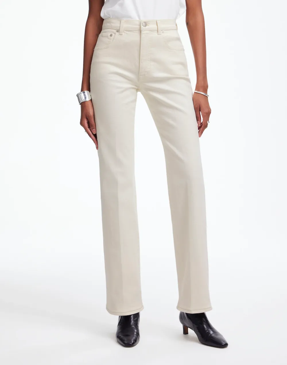 in front, these high-rise jeans are slim through the thigh and knee with a legs-for-days sexy, elongated bootcut.